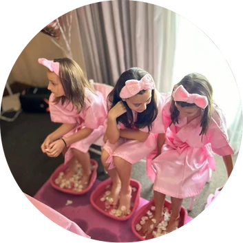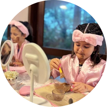 Imagine sua filha e as melhores amigas reunidas num cenário encantador com roupões, máscaras faciais de chocolate, escalda-pés com pétalas de rosa, penteados estilosos e um desfile final de brilhar os olhos…